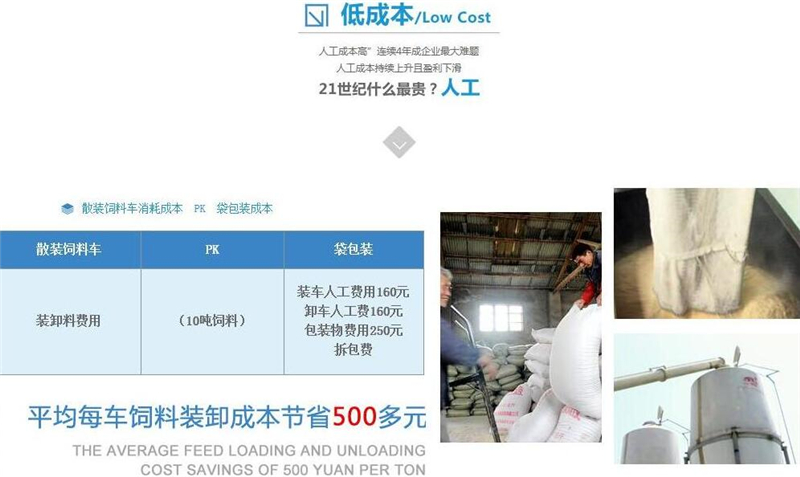 散裝飼料車的優(yōu)勢(shì): 散裝飼料的生產(chǎn)可實(shí)現(xiàn)直接生產(chǎn)直接裝車,隨產(chǎn)隨出,不需要進(jìn)行提前備貨,不占用倉(cāng)儲(chǔ)設(shè)施,也不會(huì)出現(xiàn)停產(chǎn)等待拉料的現(xiàn)象,使飼料生產(chǎn)實(shí)現(xiàn)計(jì)劃管理,生產(chǎn)效率得到提升。 ★獨(dú)有倒梯形設(shè)計(jì),散裝飼料在罐體內(nèi)密封輸送,V字形罐體卸料順暢,減少飼料的耗損,保證質(zhì)量,避免污染。 ★運(yùn)輸比包裝成袋運(yùn)輸不但節(jié)省勞動(dòng)力,而且成本較低。 ★可選電動(dòng)卸料、全液壓卸料、氣卸為全自動(dòng)上料卸料,可連續(xù)作業(yè),大大提高生產(chǎn)效率。 ★罐體內(nèi)可加裝分倉(cāng),可同時(shí)運(yùn)輸多種不同類的飼料或膨人介質(zhì)。部件標(biāo)準(zhǔn)化,容易維修保養(yǎng)。 頂部進(jìn)料倉(cāng)