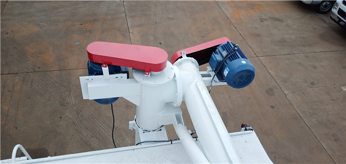 上裝罐體:罐體材質采用4mm優(yōu)質碳鋼板,整車3條絞龍,由3個5.5KW電機380V外接電源帶動頂部絞龍用液壓控制舉升,可左右旋轉180°。罐體內分為四個倉,可以獨立控制各分倉卸料順序和速度。(備注:此報價為標配,國產電機,德力西電柜)